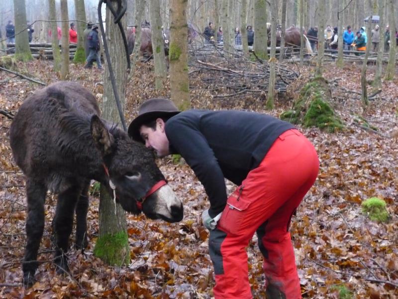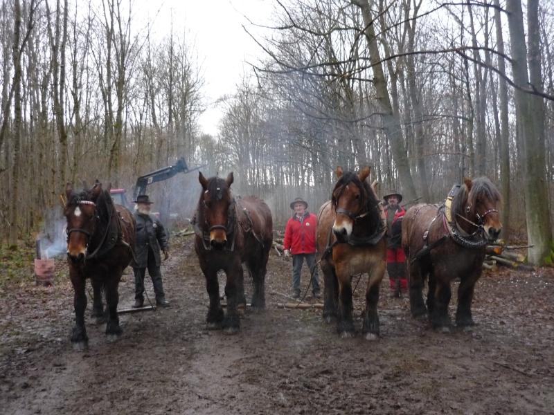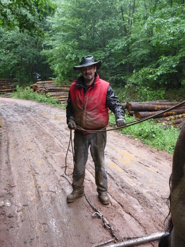Auch wenn das Wetter nicht so recht mitspielte und wir mit dem Schlamm zu kämpfen hatten, herrschte unter den Teilnehmer und dem Veranstalter France Trait eine tolle Stimmung. Jeder half jedem und gab Tipps, egal ob Norweger, Belgier, Franzose oder Deutscher. Und wenn man sich sprachlich nicht verständigen konnte, so funktionierte es dann mit Händen und Füßen. Unsere norwegischen Kollegen legten in einem alten Reisebus mit Pferdeanhänger (3 Pferde im Bus, 2 im Anhänger) über 2000 km zurück und waren 3 Tage unterwegs, um dabei sein zu können. Nach ersten Informationen waren weit über 30.000 Besucher in den drei Tagen auf der Euroforest und zeigten auch großes Interesse an den Vorführungen und Wettkämpfen der Holzrücker. Bei den Einspännern dominierten die Belgier und belegten gleich die ersten 4 Plätze, bei den Zweispännern hatte dann ein Deutscher die Nase vorn: Anton Laux aus Gutenzell mit seinen beiden Ardennern. Es war interessant zu beobachten wie die Belgier und Franzosen ruhig und gelassen fast nur mit der Stimme mit ihren Pferden arbeiteten. da konnte man sich noch einiges abschauen. Es war rundum eine gelungene Veranstaltung (wenn man sich mit dem Zeitplan der Franzosen arrangieren konnte). Abschließend möchte ich Gaetan und Mirvel Doppel, meinen Holzrücker- und Ardenner-Kollegen aus dem Elsaß danken, die uns immer zur Seite standen und für uns übersetzten. Ich danke auch France Trait und allen Teilnehmern, die diese Veranstaltung zu einem tollen Event werden ließen, von dem man noch lange zehren kann und freue mich, wenn ich beim nächsten Mal wieder dabei sein kann.PS: Im übrigen sind die Weine der Bourgogne nicht zu verachten! |